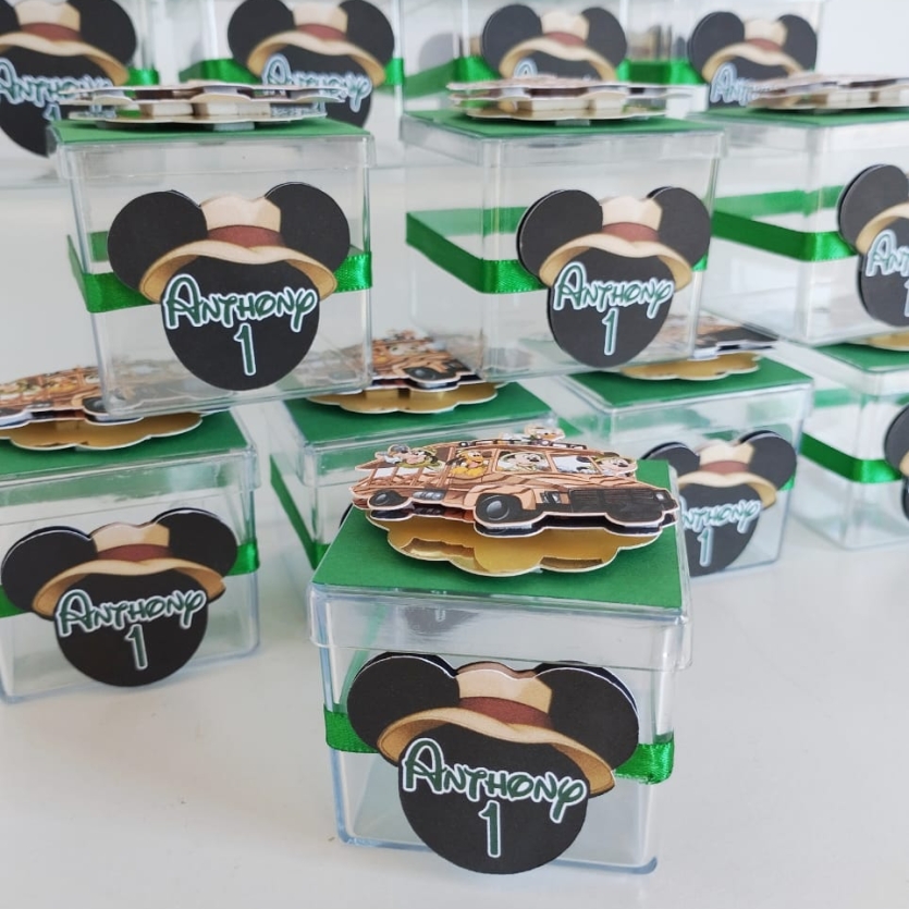 Kit 10 Caixinhas Acrílicas Personalizadas - Tema M.i.c.k.e.y Safari